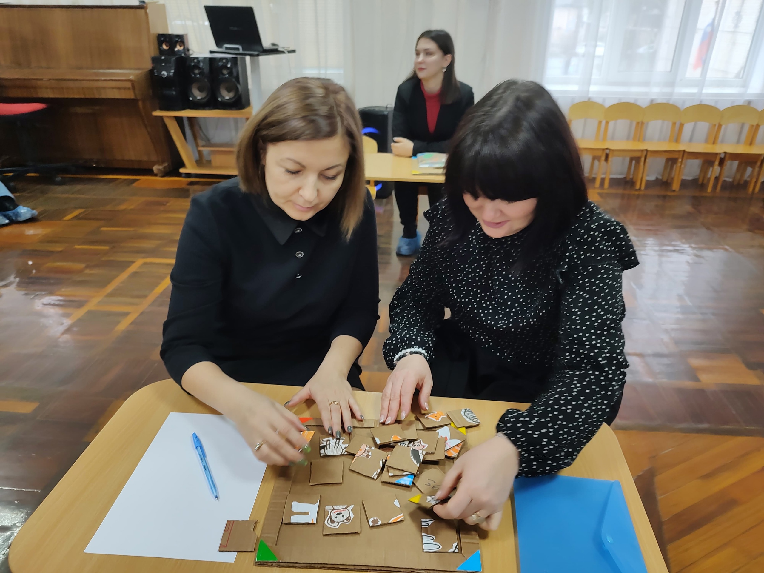 Учитель-логопед ДОО N 39 Черненко Надежда Викторовна представила свое авторское пособие, основой которого стал интерес к малым формам фольклора и увлечение пазлами. Надежда Викторовна подробно рассказала об этапах и материалах изготовления пособия с детьми, правилах игры и применения в индивидуальной и группой работе.