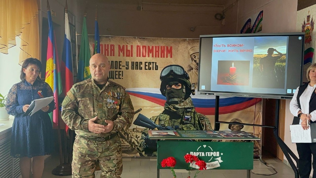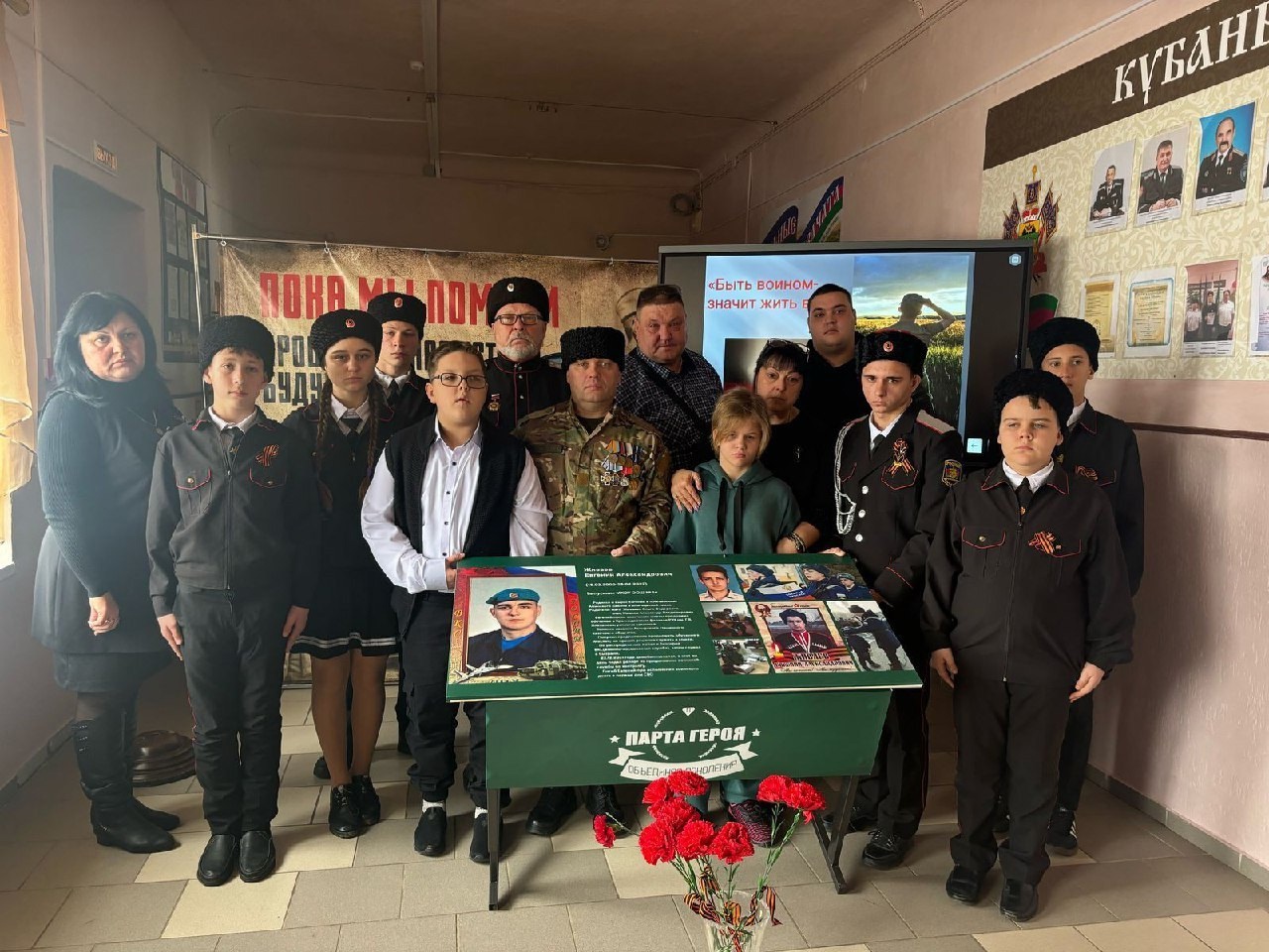 18 февраля в школе №10 поселка Ахтырского торжественно открыты стенд "Герои СВО-наши земляки" и Парта Героя, посвящённая Белоцерковец Виктору Владимировичу.