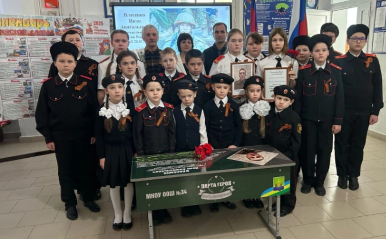 21 февраля в стенах школы МКОУ ООШ N34 х. Ленинского состоялась торжественная линейка, приуроченная к открытию парты в честь Героя Власенко Ивана Анатольевича.