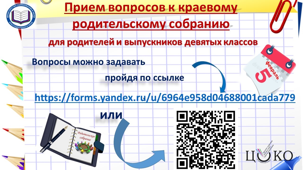 Уважаемые родители девятиклассников! 5 февраля в 18:00 часов состоится краевое родительское собрание.
