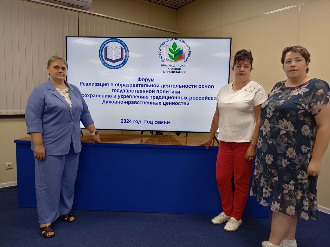 В работе форума участвовали методист МКУ «ИМЦ ДПО» Баранова И.Э. и педагоги МБОУ СОШ № 5 Анацкая Е.Е., Мостовая М.Н. Участники совещания обсудили вопросы методической поддержки учителя, координации духовно-нравственного образования и воспитания в системе образовании края, а также реализации в образовательной деятельности основ государственной политики по сохранению и укреплению традиционных российских духовно-нравственных ценностей. Педагоги края поделились успешным опытом комплексного подхода реализации предметов и курсов духовно-нравственной направленности в условиях современной школы, опытом использования интерактивных выставочных и музейных проектов в образовательной деятельности.