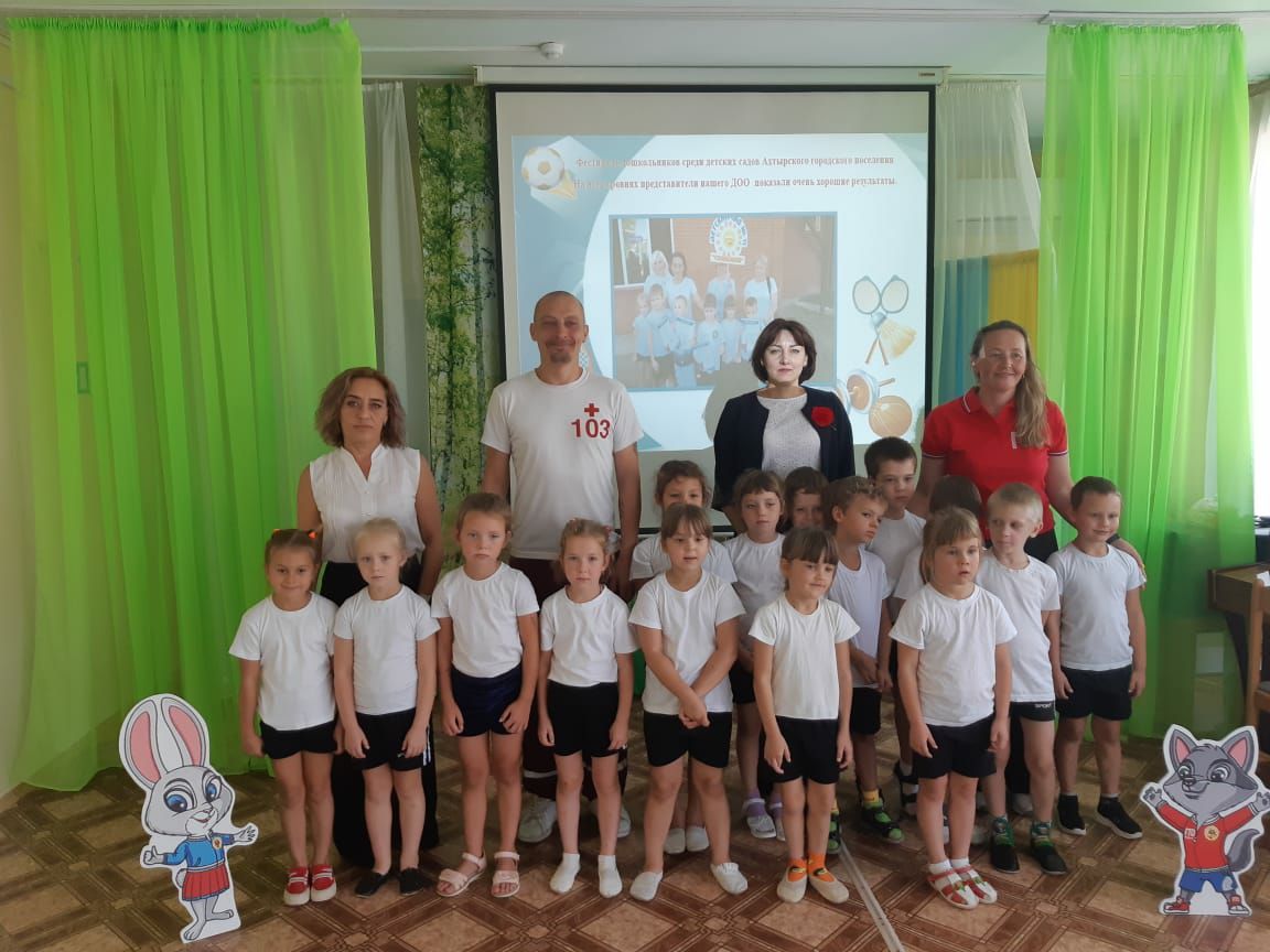 На торжественном мероприятии присутствовали почётные гости, представители ГТОАбинск Центра Тестирования - Бахарева Ирина Анатольевна, директор МКУ Абинского спортивно-оздоровительного клуба и Наумов Александр Александрович, старший фельдшер. Ребята подготовительной группы рассказали о том, как проходит подготовка к предстоящему фестивалю ГТО дошкольников, которое состоится на территории Ахтырского поселения уже в эту субботу.Пожелаем воспитанникам детского сада 11 " Солнышко" спортивных успехов!