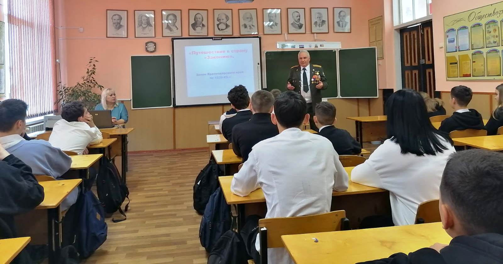 В рамках заседания клуба «Подросток» 21 марта для ребят 8-го класса школы № 3 состоялось путешествие в страну «Законию». Вместе с активистом ветеранского движения Кубани, ветераном Афганской войны, полковником ФСБ в отставке Ахматулиным Рафаэлем Фарруховичем рассуждали о необходимости соблюдать и учить законы ещё в подростковом возрасте. Кроме этого гость рассказал ребятам о своей профессии.