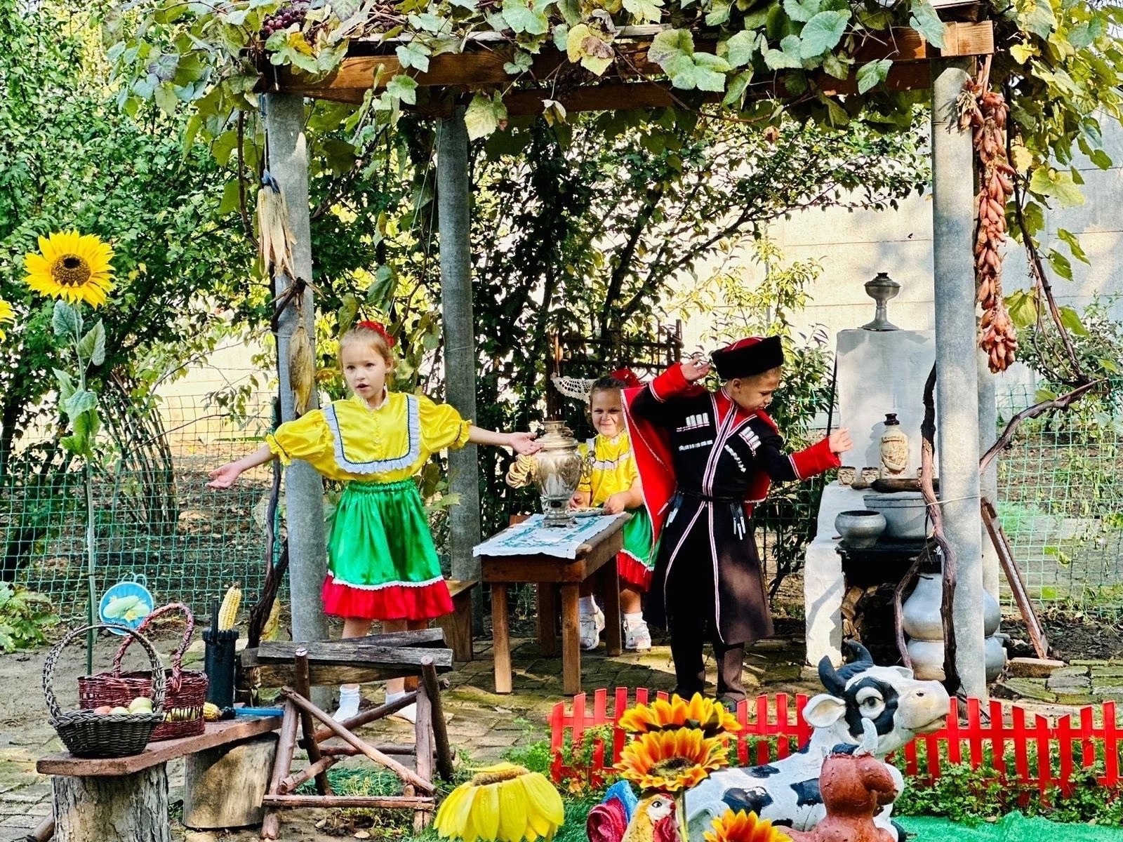 На базе МБДОУ детский сад № 30 х. Екатериновского 12 октября прошло заседание районного методического объединения для педагогов-дошкольников «Казачий круг» на тему «Проектная деятельность в группах казачьей направленности» - «Мы- наследники рода казачьего». Заведующий детским садом Беленко О.В. и старший воспитатель Манько С.П. поделились с коллегами опытом создания проектов, посредством которых дети на конкретных примерах впитывают дух казачества, трудолюбие и доброту, взаимовыручку и сочувствие, любовь к семье и близким. Территория детского сада - яркий пример воспитания дошкольников не только словом , но и делом. Для педагогов была организована экскурсия по ухоженной территории детского сада, а на казачьем подворье дошколята представили воспитателям инсценировку шуточной кубанской песни «Варенички».