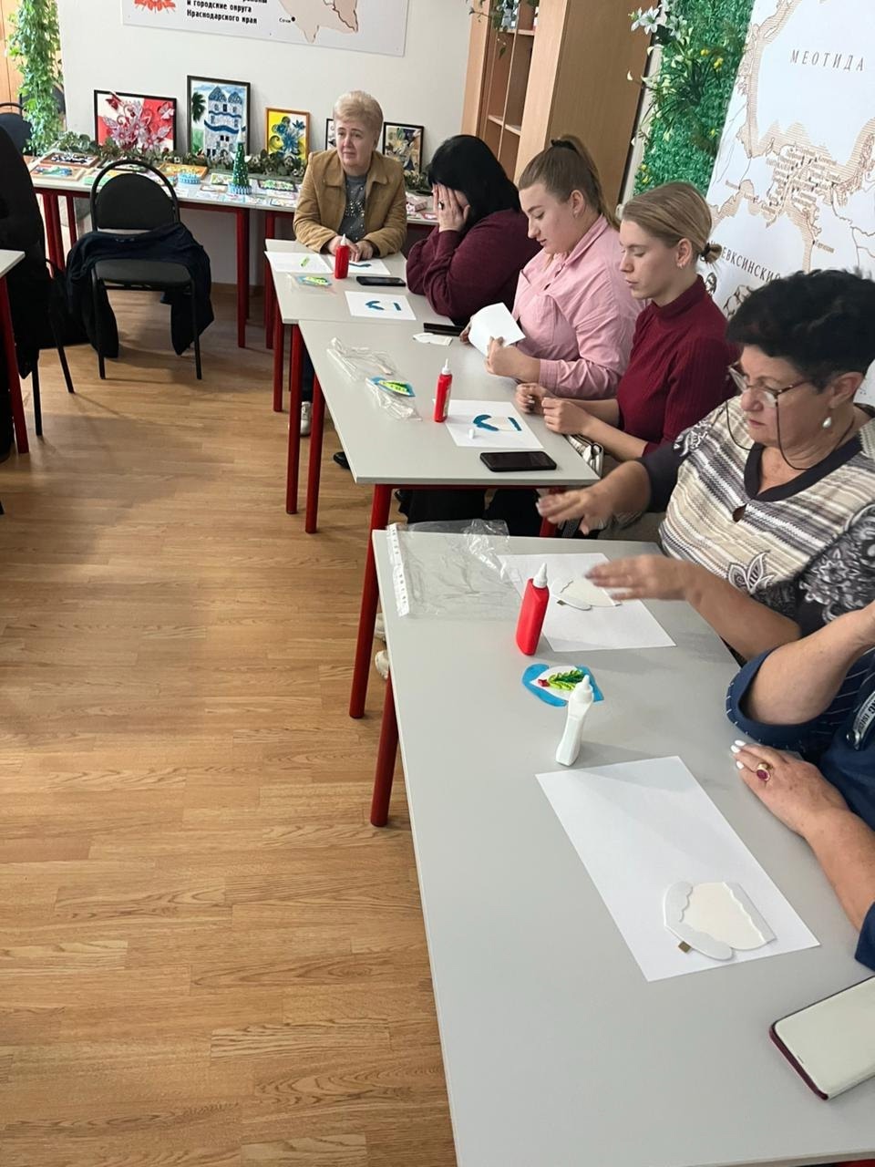В заключении мероприятия все педагоги приняли участие в мастер-классе по изготовлению праздничной открытки, который провела руководитель кружка "Волшебные узоры" и "Квиллинг" Зайцева Е. В.