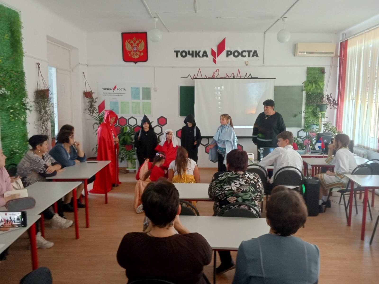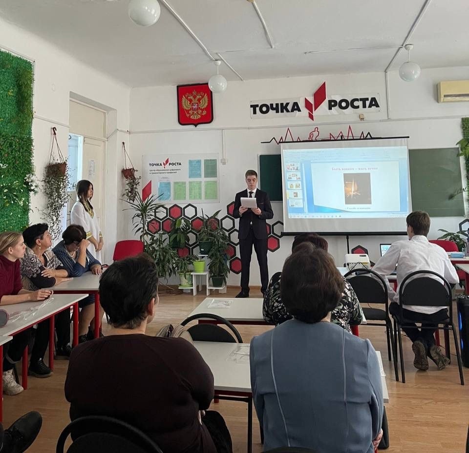 Обучающиеся 5-го класса показали костюмированную сценку "Суд царя Соломона" с использованием архаизмов на примере групповой и парной работы "Мозайка". О жизни казака через видеофильм очень проникновенно рассказали ребята из 7-го класса. Девятиклассники Каражаев Вадим и Хачатурян Гаяне поделились своими интересными научно-исследовательскими проектами. Об участии в федеральных перечневых конкурсах рассказали ученики 11-го класса: