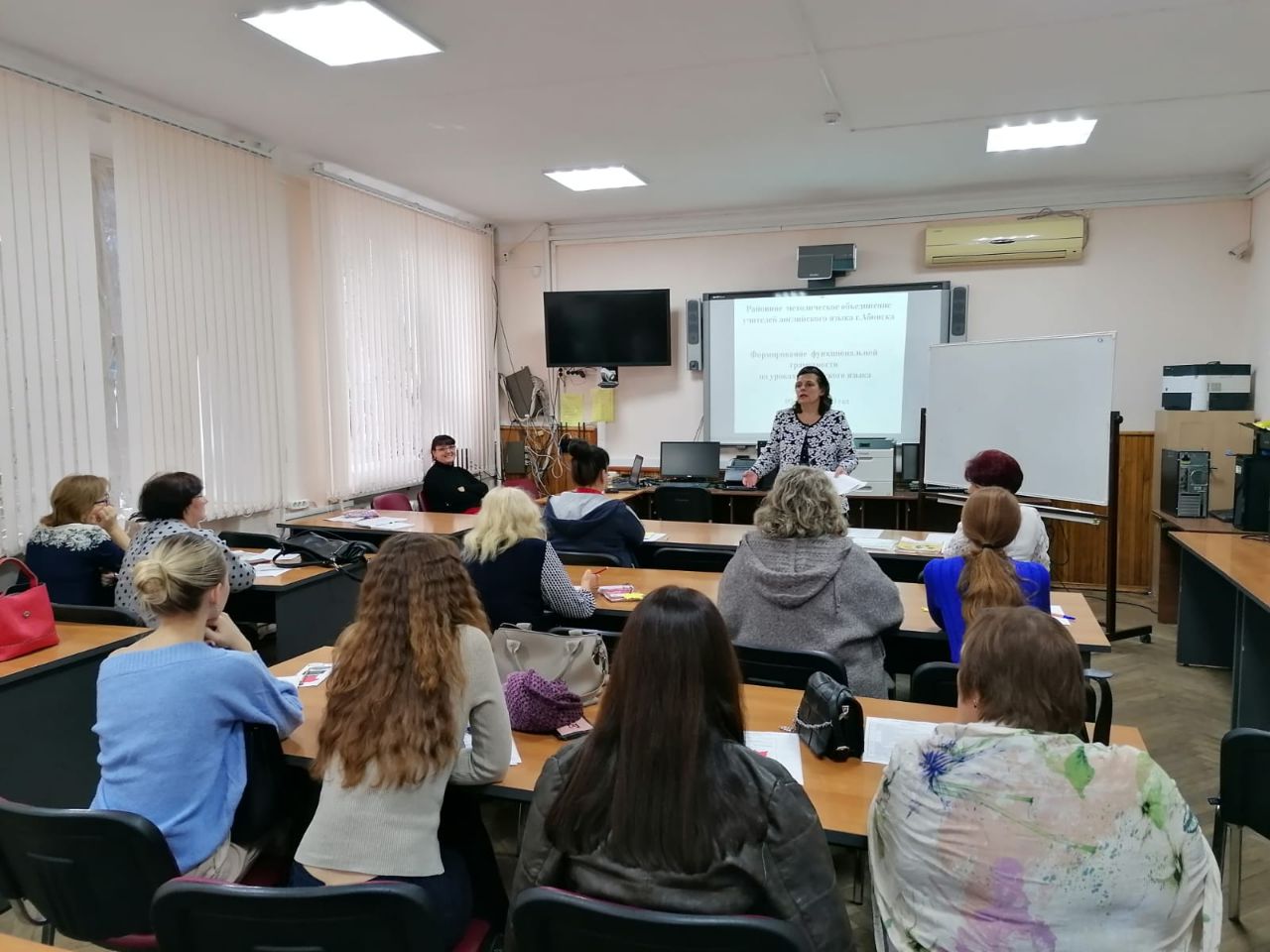9 ноября на базе МАОУ СОШ 4 прошёл семинар- практикум для учителей английского языка по теме ,,Формирование функциональной грамотности на уроках английского языка,,. Педагоги школы провели это мероприятие в виде Методического дня: Пилич Ю.П. провела открытый урок с обучающимися 5г класса по теме ,,Формирование читательский компетенции как компонента ФГ,,.;Лузина О.Ю. вместе со своими учениками 2г класса рассказала о применении правил чтения; заместитель директора по УВР Слесарева Н.Л. поделилась опытом подготовки педагогов школы к внедрению и реализации обновлённых ФГОС. В заключении мероприятия руководитель ШМО учителей английского языка МАОУ СОШ 4 Григорян А.А. подвела итоги формирования ФГ на уроках английского языка. Мероприятие было очень полезным,познавательным и позволило выявить лучшие педагогические практики для последующего их обобщения.
