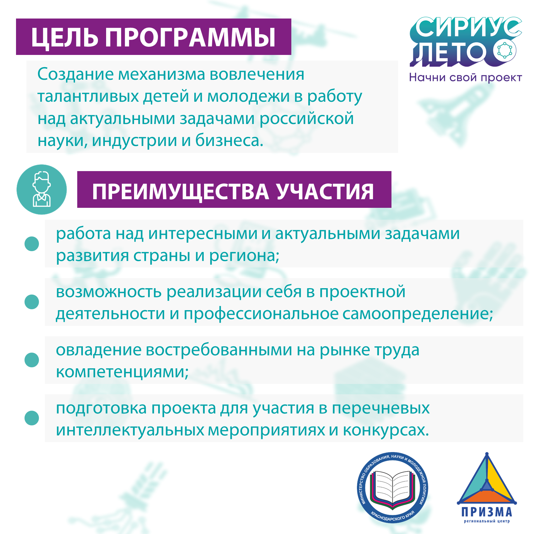 Подробнее о Программе на Сайте Программы «Сириус.Лето: начни свой проект»: siriusleto.ru .