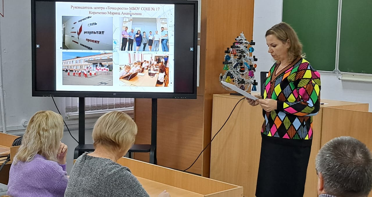 27 ноября 2023 года на МБОУ СОШ № 1 осуществлял свою работу постоянно действующий семинар для центров образования "Точка роста" по теме "Точка роста" - драйвер изменений в системе образования". В мероприятии принимали участие руководители и педагоги дополнительного образования Центров. Руководители и педагоги Центров школ №№ 1,17,32,38 поделились своими лучшими практиками в области использования информационных технологий при подготовке к ГИА, формирования функциональной грамотности на внеурочных занятиях, работы с обучающимися над исследовательскими проектами. Такие мероприятия очень полезны и познавательны, так как позволяют не только выявить и обобщить педагогический опыт, но показательно продемонстрировать работу ЦО "Точка роста" как основного ресурса для получения качественного образования, развития талантов детей, обучения и реализации идей.