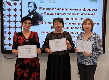 10 ноября 2023 года педагоги нашего района стали участниками межрегиональный форума ,,Педагогических чтения,посвящённые 200- летию со дня рождения К.Д.Ушинского: тенденции,перспективы,Векторы развития системы образования,,. Свой опыт работы по формированию функциональной грамотности представили: учитель начальных классов МБОУ СОШ 30 Борзова Н.А. ,,Формирование читательского компонента функциональной грамотности младших школьников через использование природосообразных технологий,,,учитель английского языка МБОУ СОШ 30 Сушко Е.Н. ,,Метод проекта в обучении английскому языку,,,учитель русского языка МБОУ СОШ 6 Зубова Ольга Николаевна ,,Формирование читательский грамотности во внеурочной деятельности,,. За участие в мероприятии педагоги получили сертификаты.