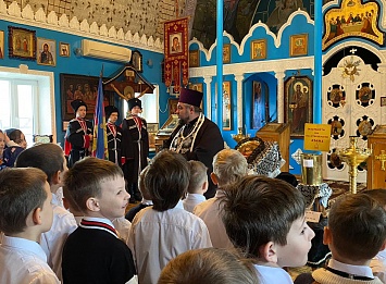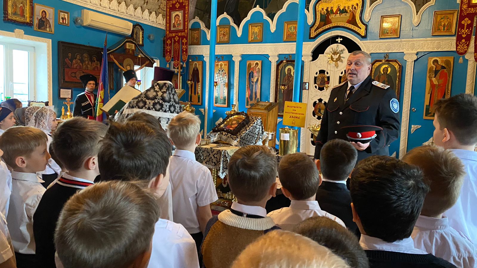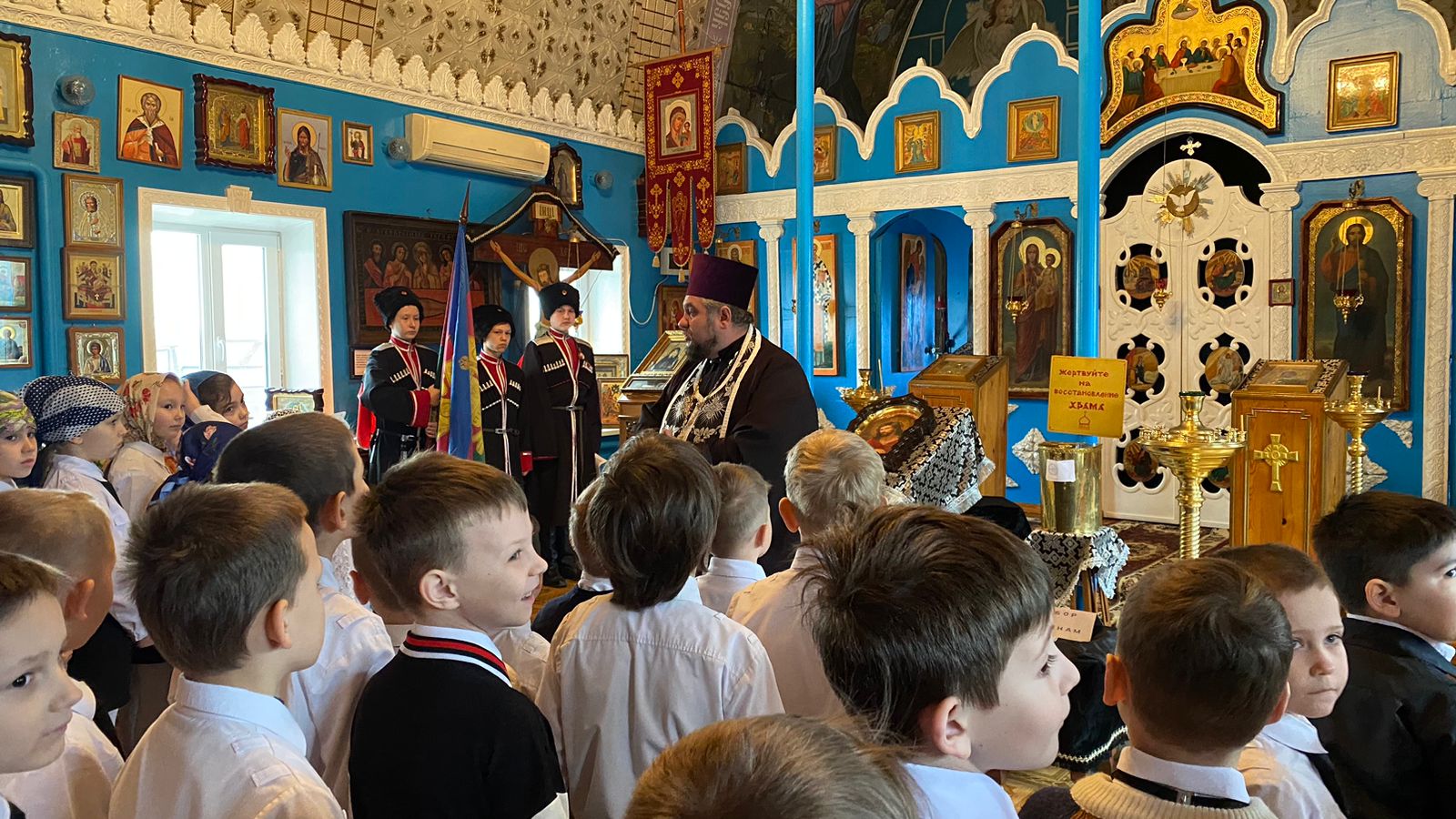 В Храме Покрова Пресвятой Богородицы станицы Холмской 14 марта 2023 года учащиеся 1а, 1б и 1в классов казачьей школы № 17 приняли торжественную присягу: «Жить по обычаям своего народа и соблюдать Заповеди божьи».