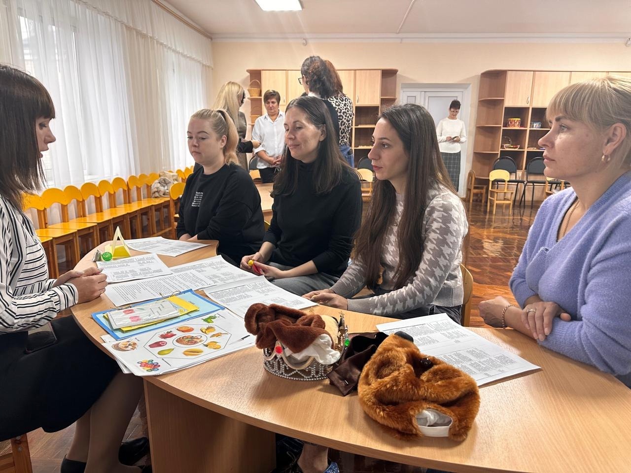 С приветственным словом выступили: и.о. заведующего Малова А. И., руководитель семинара воспитатель Малинка Наталия Геннадиевна, которая рассказала об особенностях календарно-тематического планирования, провела подвижные игры в рамках образовательной области "Физическое развитие" и обсудила изменения и дополнения. Молодые педагоги и обучающиеся МБОУ СОШ № 38 приняли активное участие в работе семинара-практикума в малых группах. В обзоре изменений по образовательным областям ФООП ДО выступили: учитель-логопед Максимова Анна Алексеевна, воспитатели: Малинка Наталия Геннадиевна, Бернацкая Наталья Евгеньевна и Варяница Валентина Александровна. Раскрывая изменения художественно-эстетического развития, с презентацией выступили воспитатели: Малышко Джульетта Павловна и Копайгора Роксана Александровна. Учитель-логопед Крикленко Ольга Валерьевна провела деловую игру "Думай, говори, рисуй".