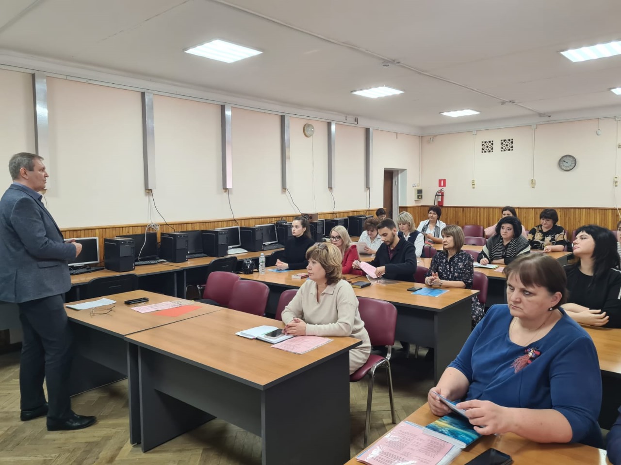 Опытом методической работы с завучами и учителями поделились: Уривская Е.Д., завуч, курирующая начальное обучение, Волкова Т.В., руководитель ШМО для учителей начальных классов. В практической работе с завучами было представлено как грамотно и детально проводить самоанализ урока, предложены методы для создания ситуации успеха для ученика на уроках, мотивации его к обучению.